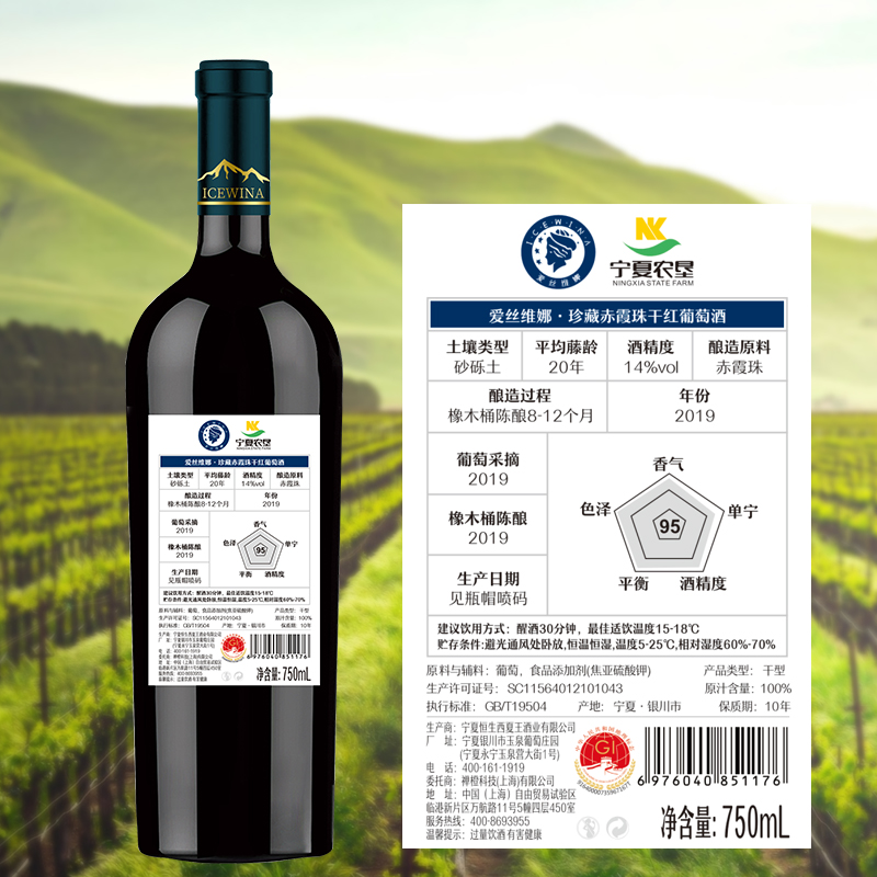 爱丝维娜贺兰山东麓珍藏干红葡萄酒750ml宁夏红酒官方旗舰店正品 - 酒廷1990酒类旗舰店