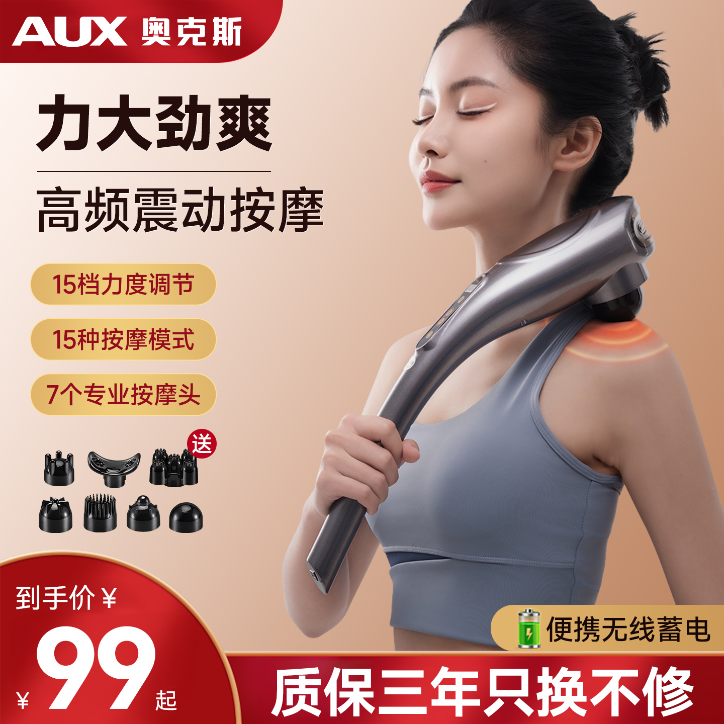 奥克斯按摩器手持式颈椎腰部背部电动海豚捶背器震动全身经络仪棒 - 奥克斯品胜专卖店