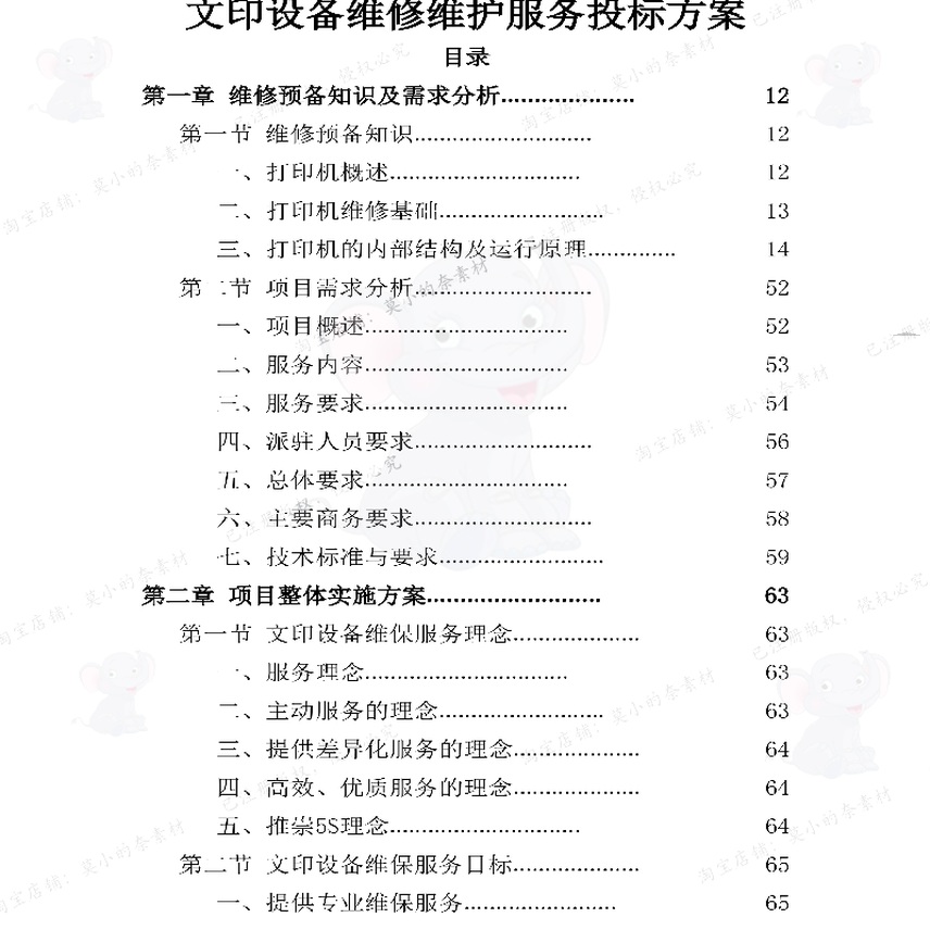 打印文印设备维护服务投标方案项目参考范本word可编辑模板文档 - 莫小的奈素材店