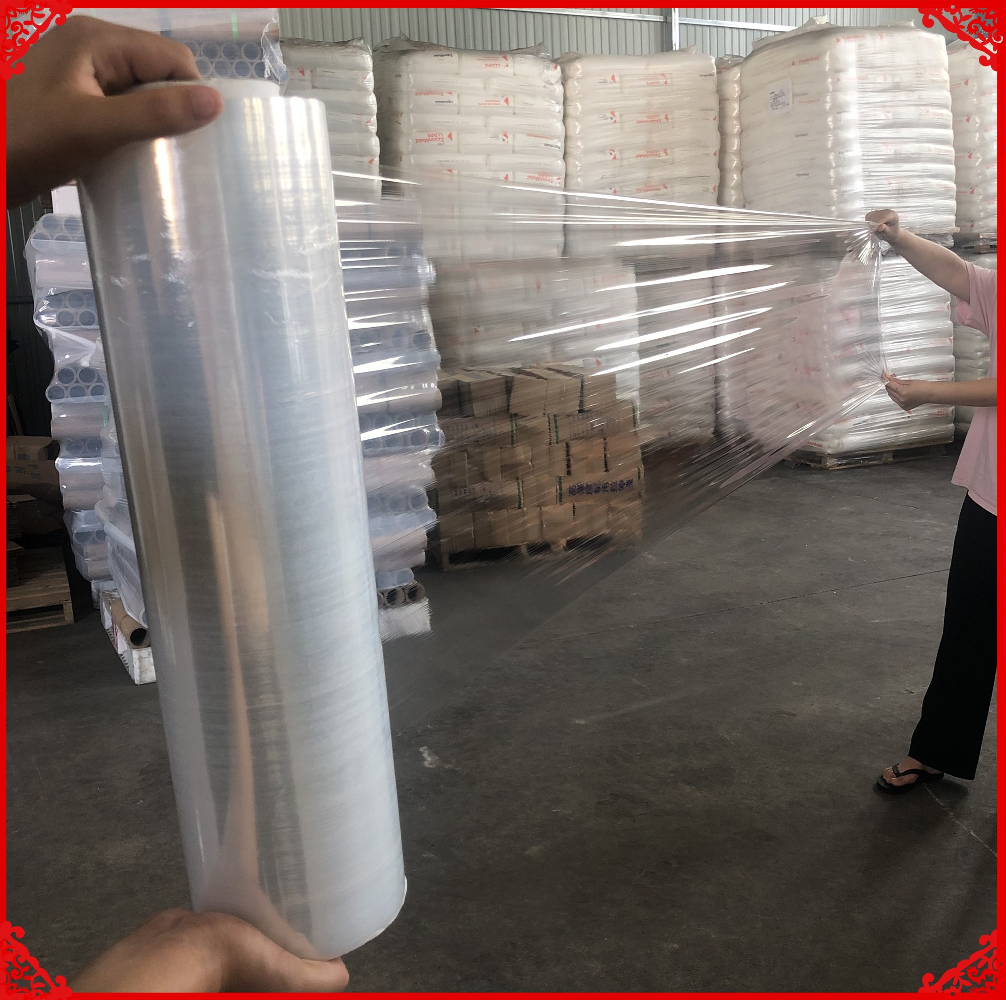 PE缠绕膜打包膜50cm宽拉伸膜大卷自粘工业用包装膜托盘保护膜围膜 - 圣鑫塑料包装材料有限公司