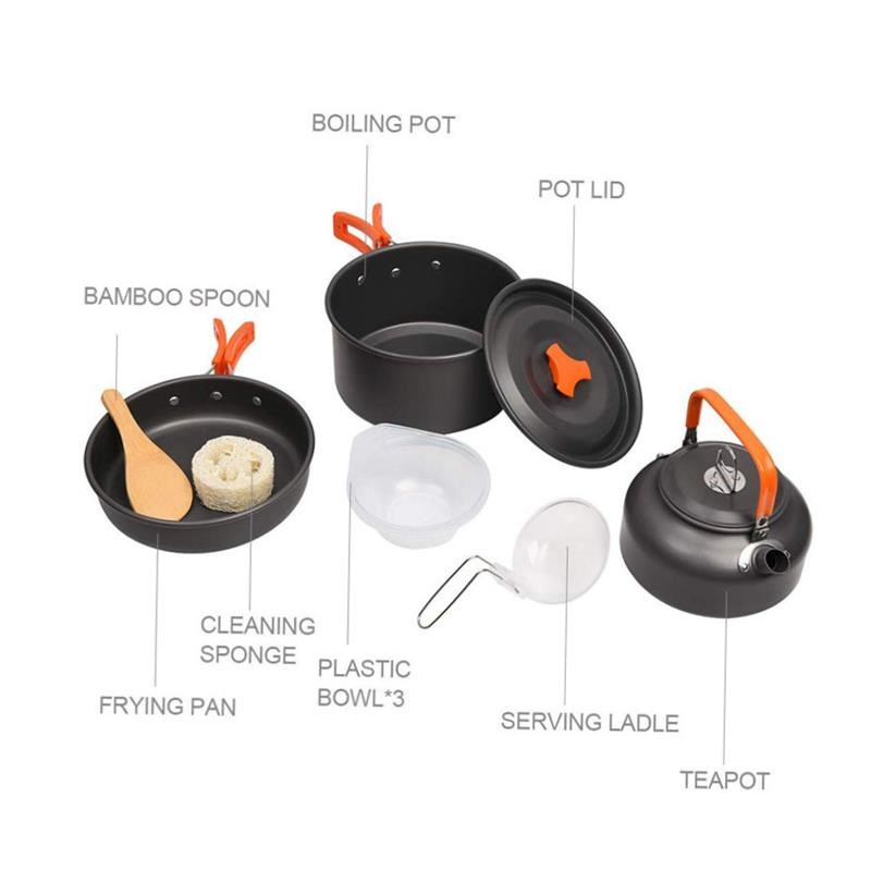Outdoor Camhping Cookware Kit Aluminum Cooking Pots Set Wa - d[s200716610]