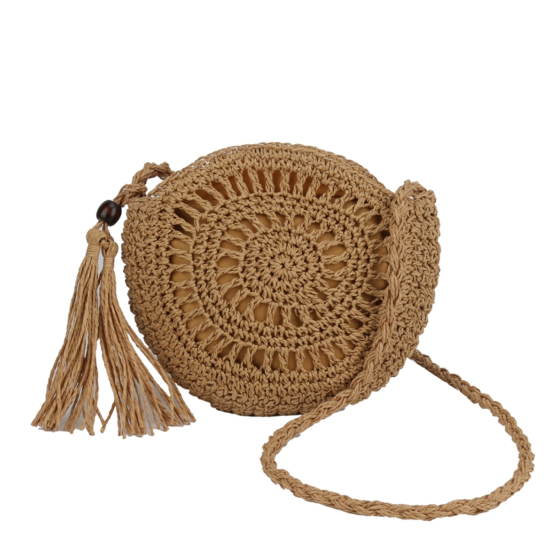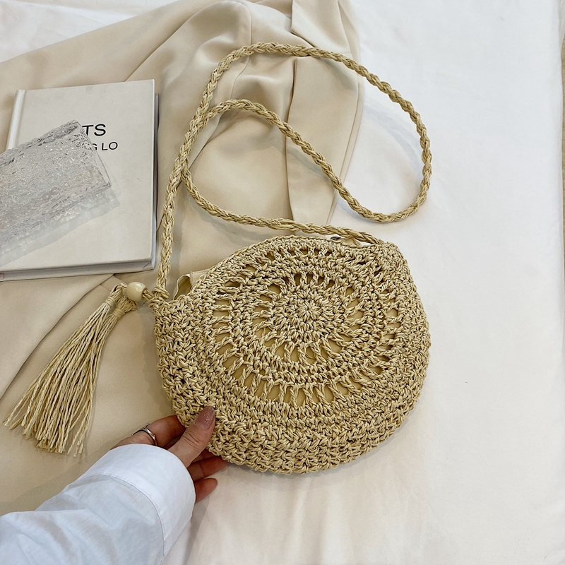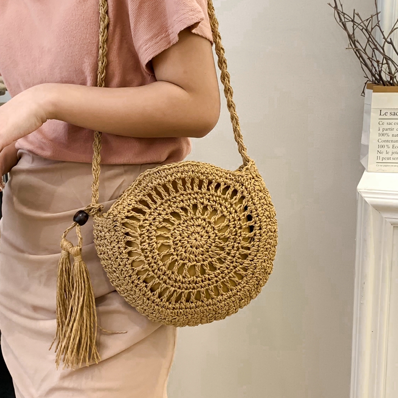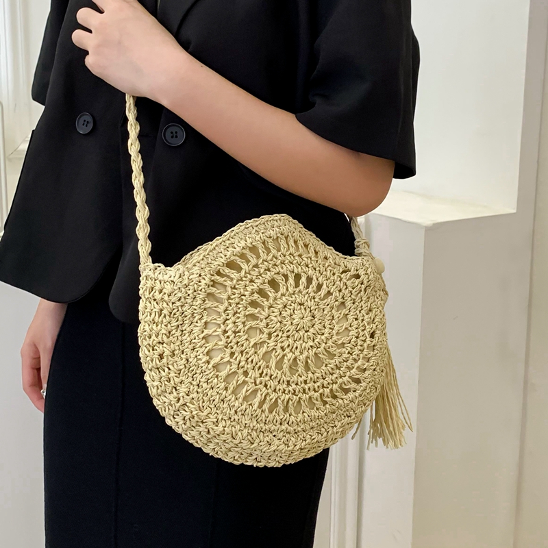 编织小包包女2025新款夏季流行草编包海边度假沙滩单肩斜挎小圆包 - YM 原创韩风潮包