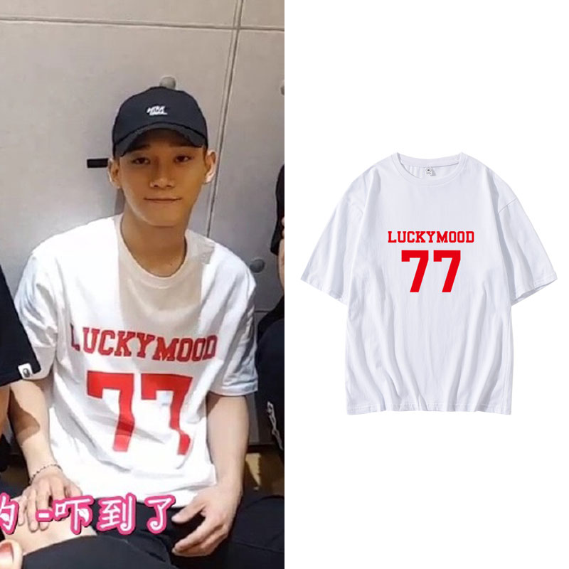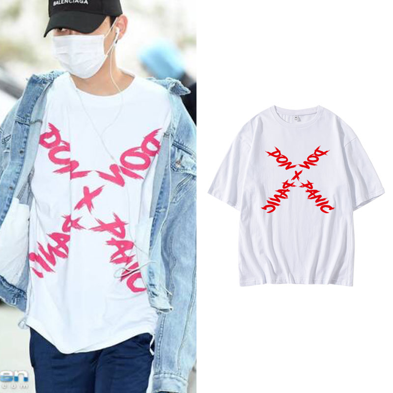 EXO金钟大CHEN街拍衣服同款短袖宽松落肩半袖T恤夏季纯棉印花上衣 - 小韩家的定制