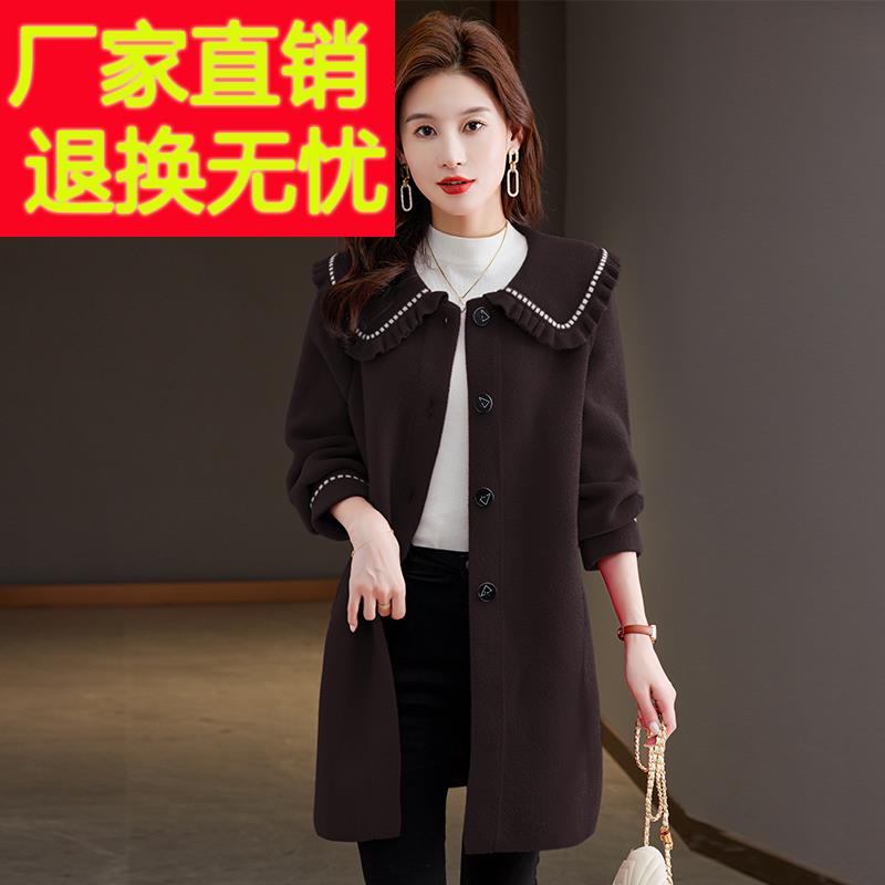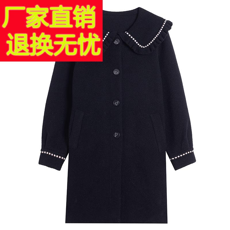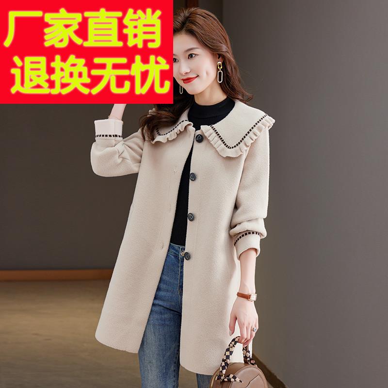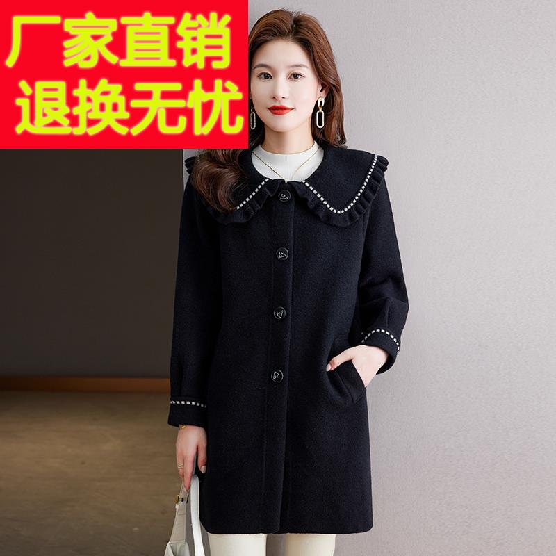秋冬新款娃娃领女外套修身显瘦中长款时尚洋气加大码羊绒毛呢大衣 - 濮院精品优质毛衣羊毛衫