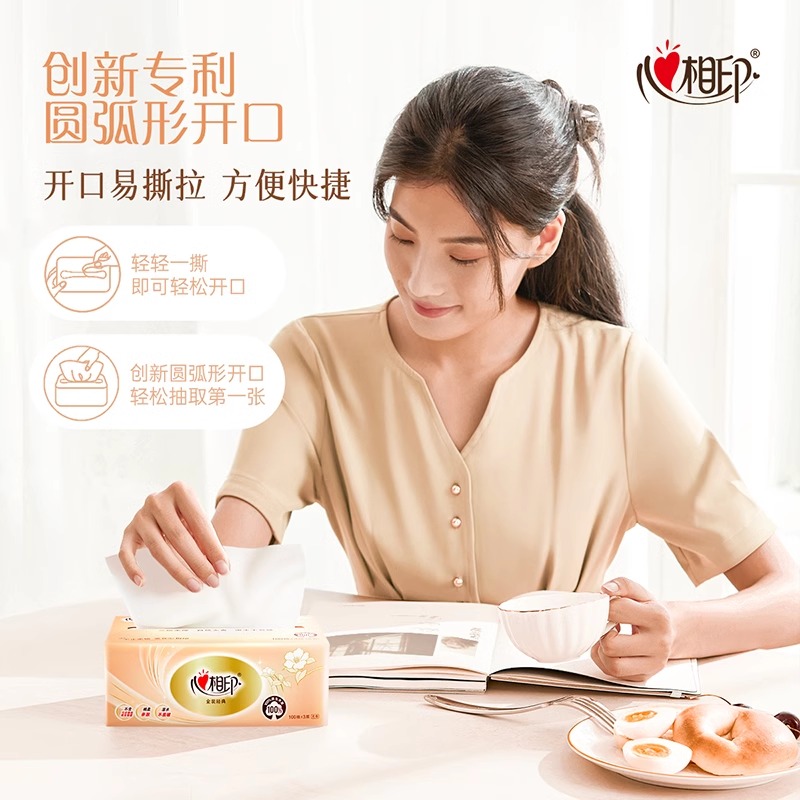 心相印抽纸100抽家用面巾纸3层柔软亲肤可湿水抽取式餐巾纸纸巾 - 蜜语家居生活馆