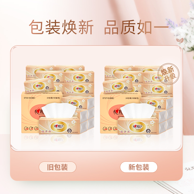 您的位置:他他商城  >   >  心相印抽纸100抽家用面巾纸3层柔软亲肤可湿水抽取式餐巾纸纸巾