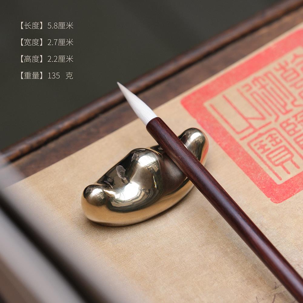 问心堂实心黄铜笔山元宝笔搁笔山文房四宝书法专用笔架毛笔搁压书 - 金牛甄选百货