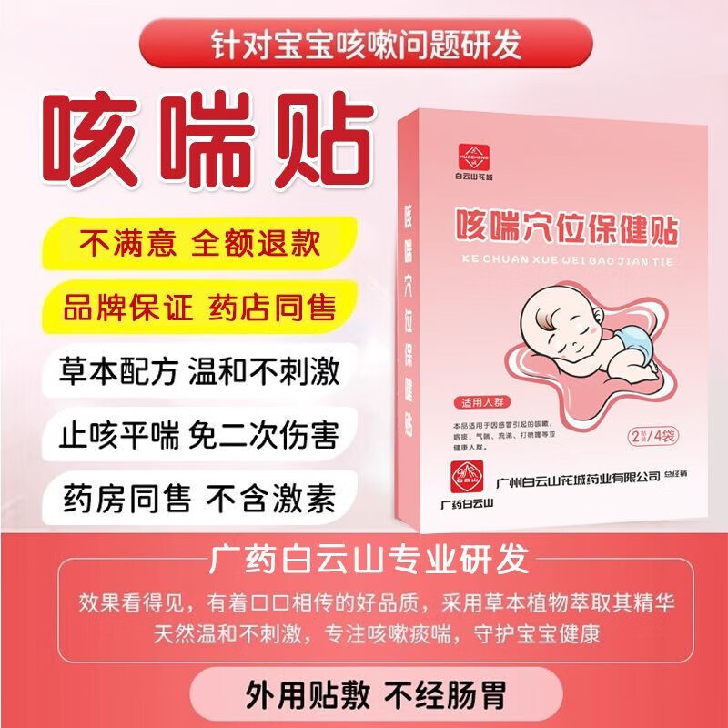 白云山花城小儿咳喘穴位保健贴咳嗽宝宝咯痰气喘流鼻涕足底贴HJ - 粤万顺大药房旗舰店