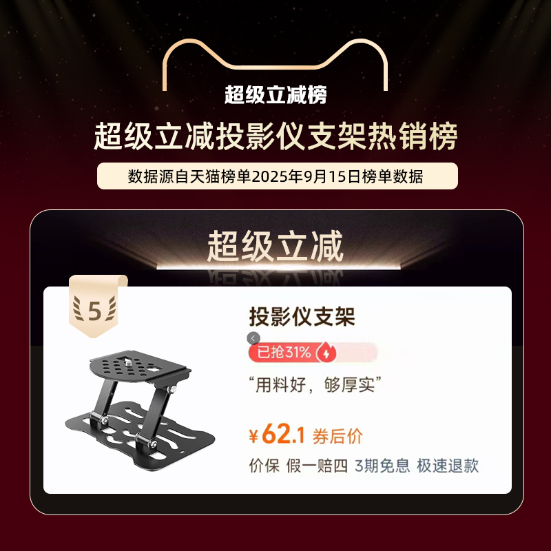 TYBOY投影仪支架通用云台投影机桌面可调节底座吊装壁挂支架适用于小明大眼橙小米投影床头投影机支架加厚款 - TYBOY旗舰店
