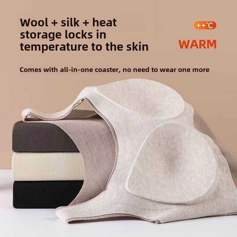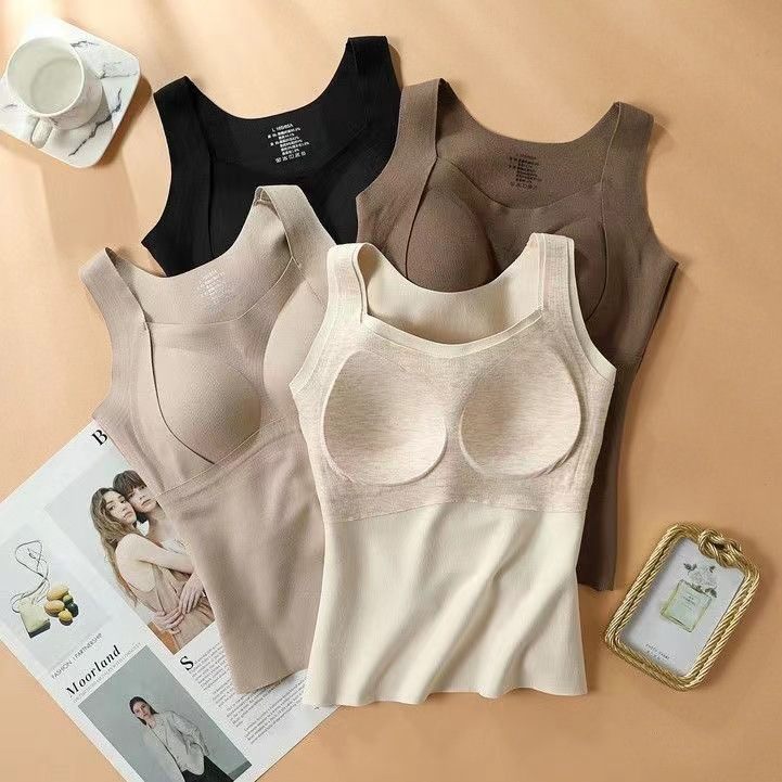 无痕德绒发热双面磨毛保暖内衣女背心固定一体杯带胸垫打底衫上衣 - 雨梅百货店