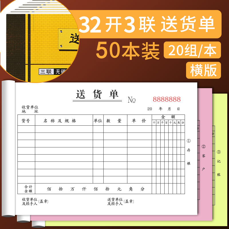 您的位置:他他商城  >   >  50本送货单三联二联加厚大本竖式收据票据本无碳复写手写三D联单