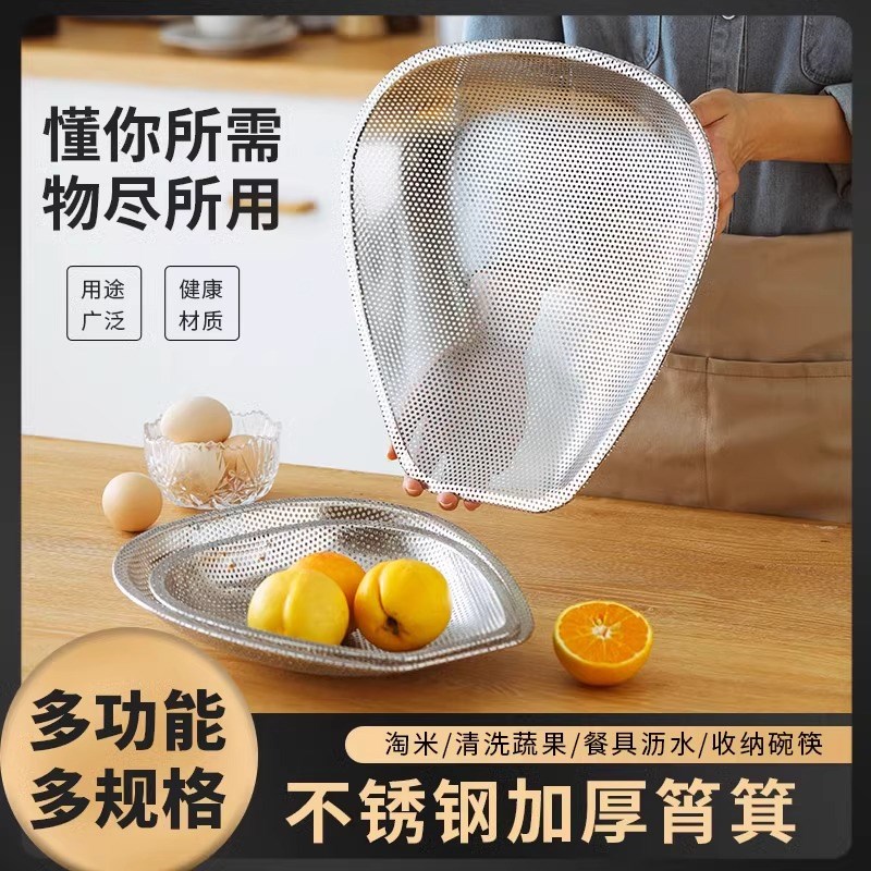 您的位置:他他商城  >   >  加厚不锈钢筲箕簸箕家用r洗菜篮沥水筐滤水篮洗米筛网淘米漏盆筛