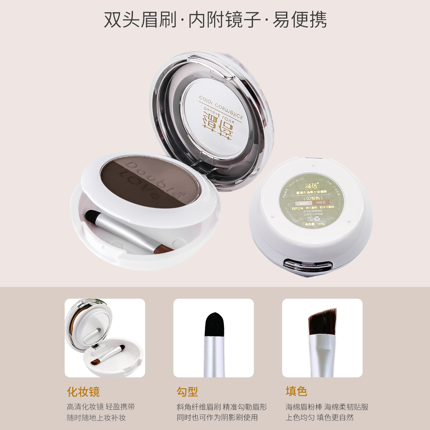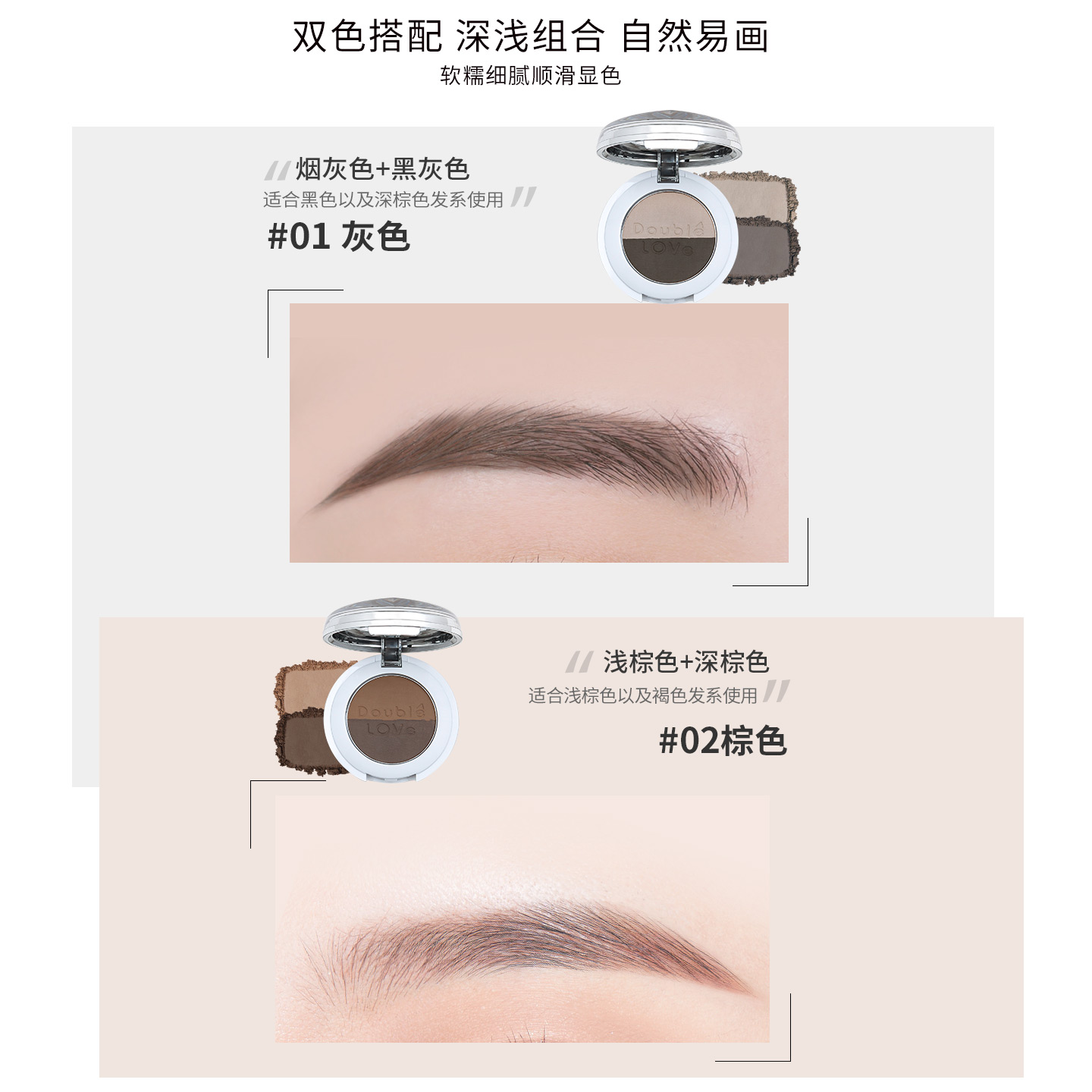 蕴蓓自然立体眉粉防水防汗不脱色深浅棕色灰黑色双色盘新手初学者 - DoubleLOVe蕴蓓旗舰店