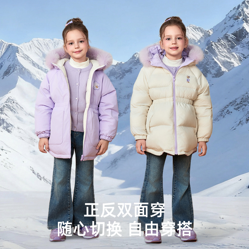 【双面穿四防】PawinPaw卡通小熊童装25年秋冬新款女童保暖羽绒服 - pawinpaw旗舰店
