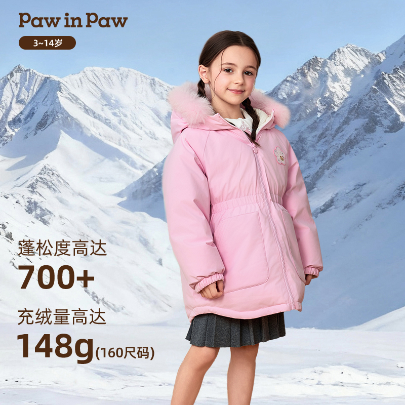 【双面穿四防】PawinPaw卡通小熊童装25年秋冬新款女童保暖羽绒服
