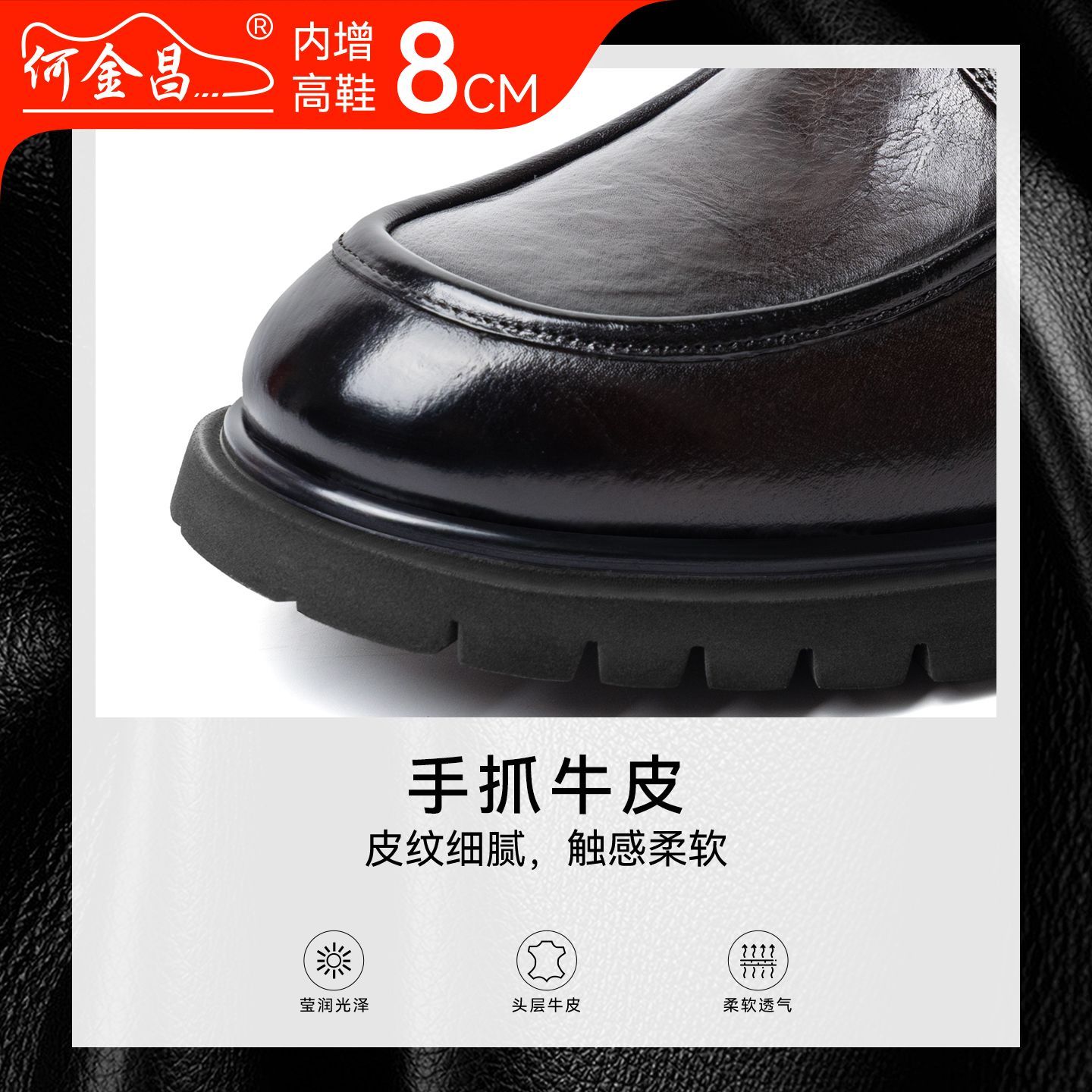 何金昌增高鞋男士商务正装皮鞋英伦户外套脚休闲鞋时尚德比鞋8CM - 何金昌鞋何金昌