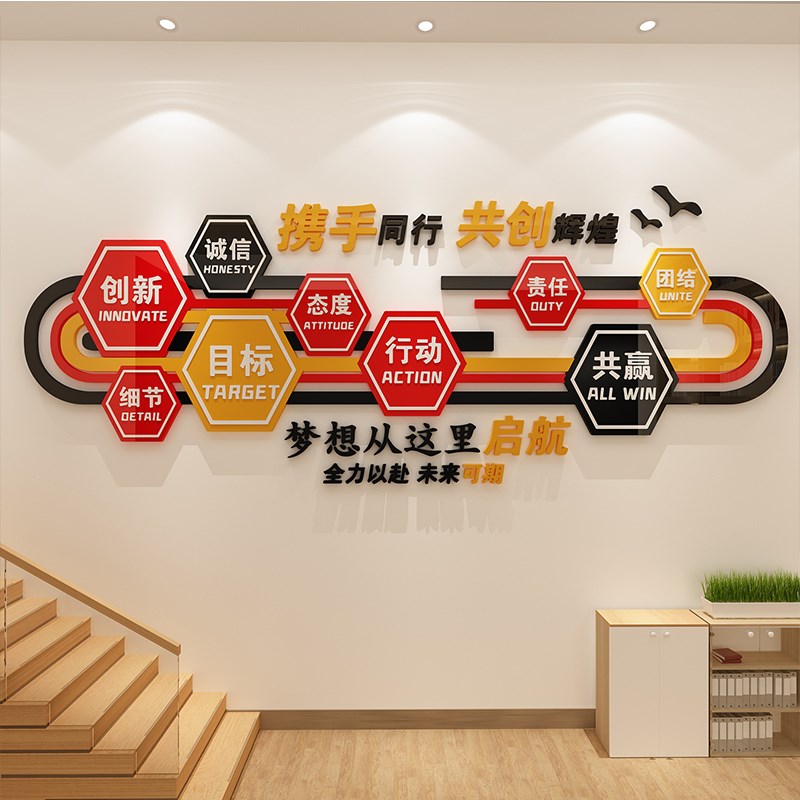 公司企业办公室高级前台形象设计效果图文化进门墙面装饰布置励志 - tb029305518794