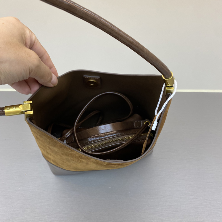 高级感复古磨砂皮腋下女包新款轻奢小众设计单肩包时尚百搭水桶包 - 世佳皮具