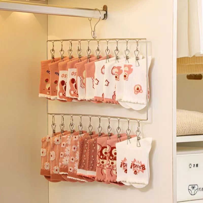 不锈钢袜子晾晒架多夹子晾衣架宿舍防风婴儿袜子收纳夹晒袜子神器 - 好物优选百货超市