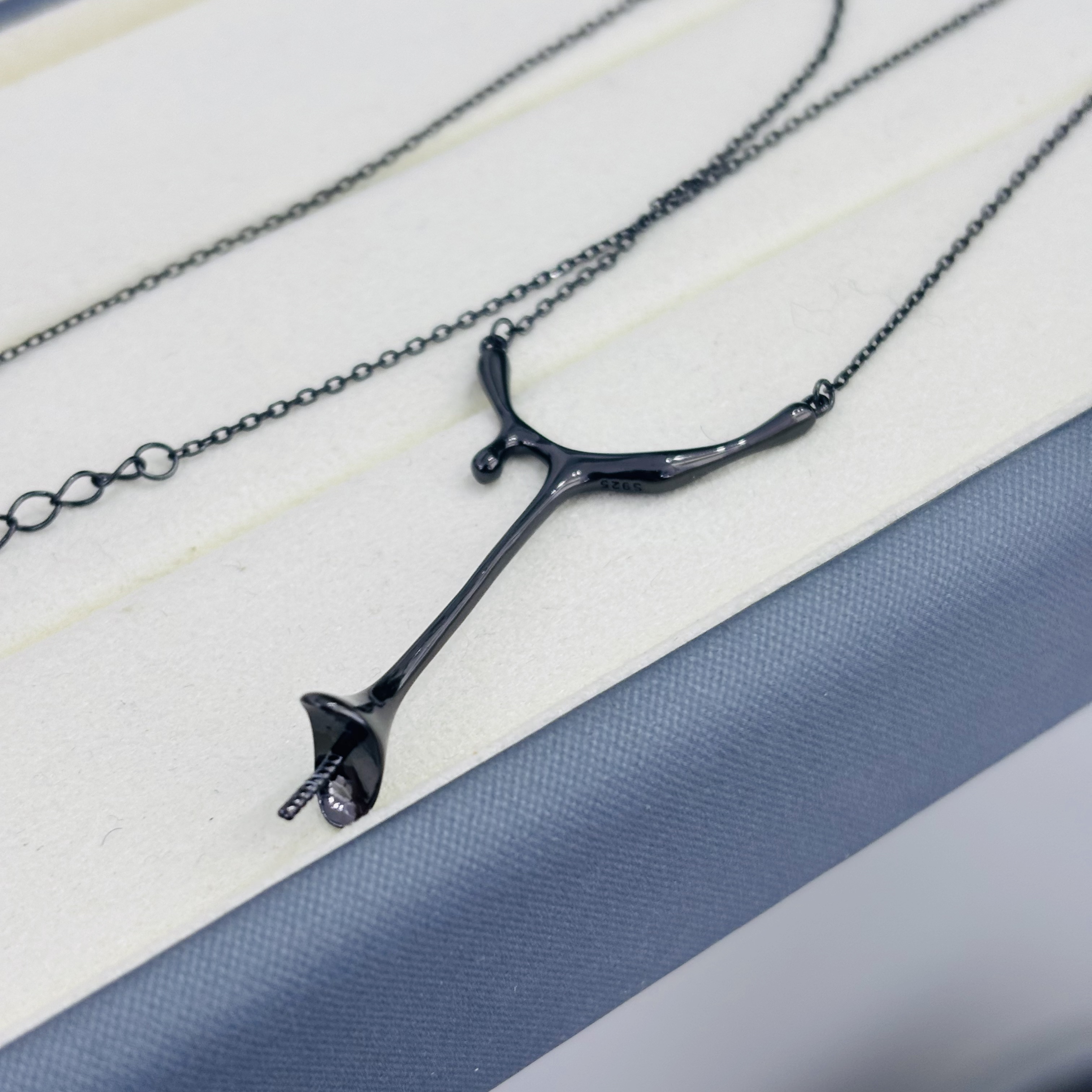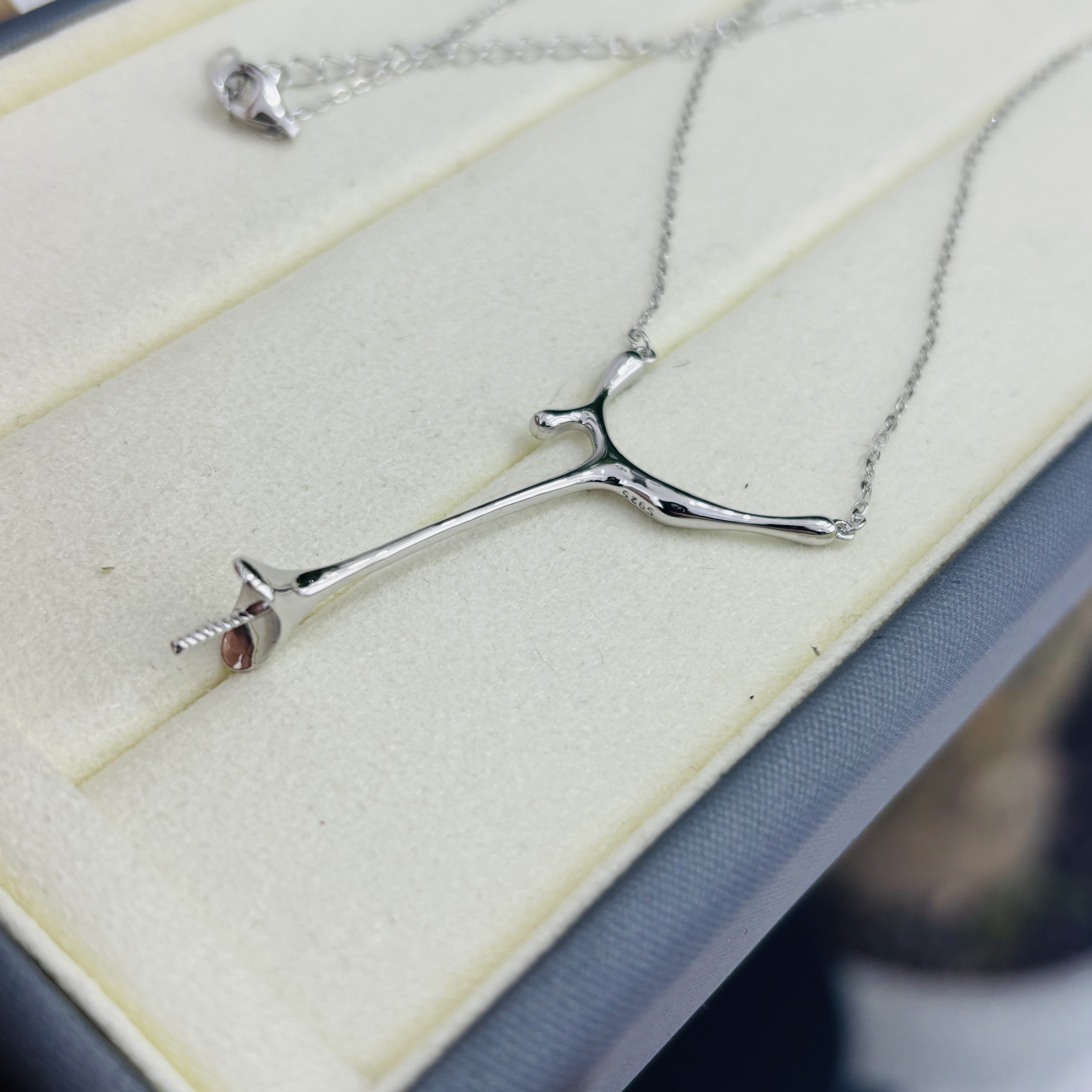 精工纯银水滴套链diy珍珠配件可配10-11-12mm珍珠45cm - 洛禾珍珠纯银精致配件