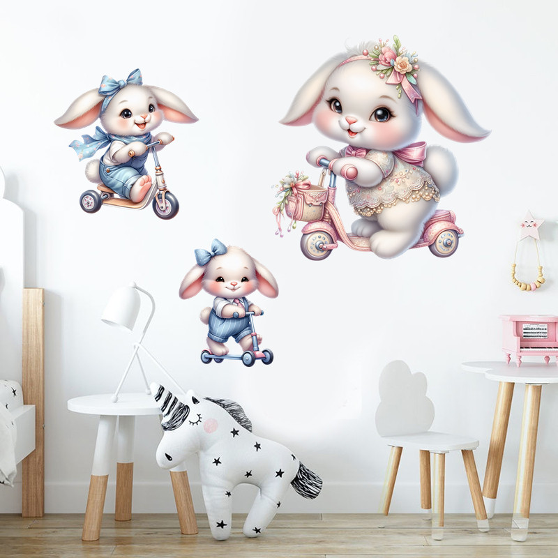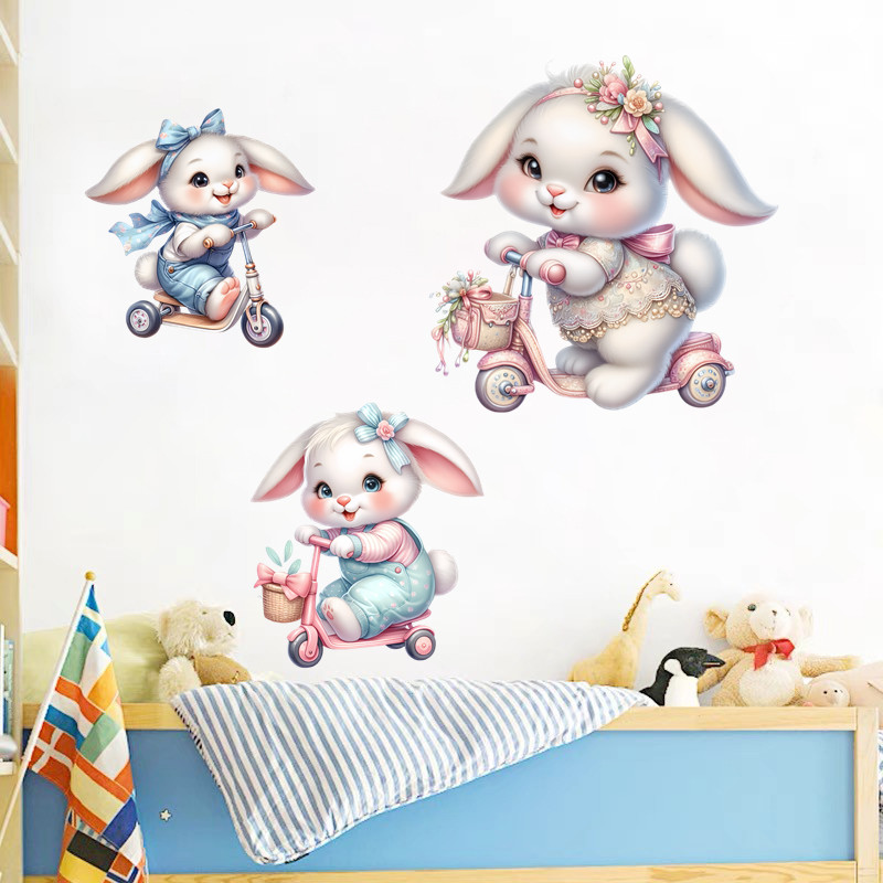 卡通萌兔可爱兔子贴纸墙贴画装饰客厅卧室房间行李箱自粘防水遮丑 - 梦想家居贴画