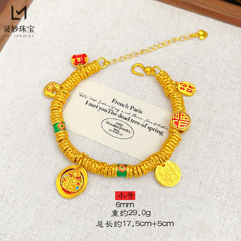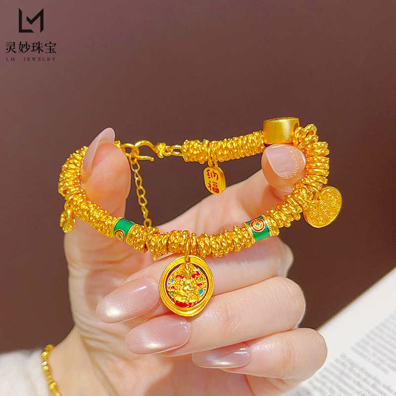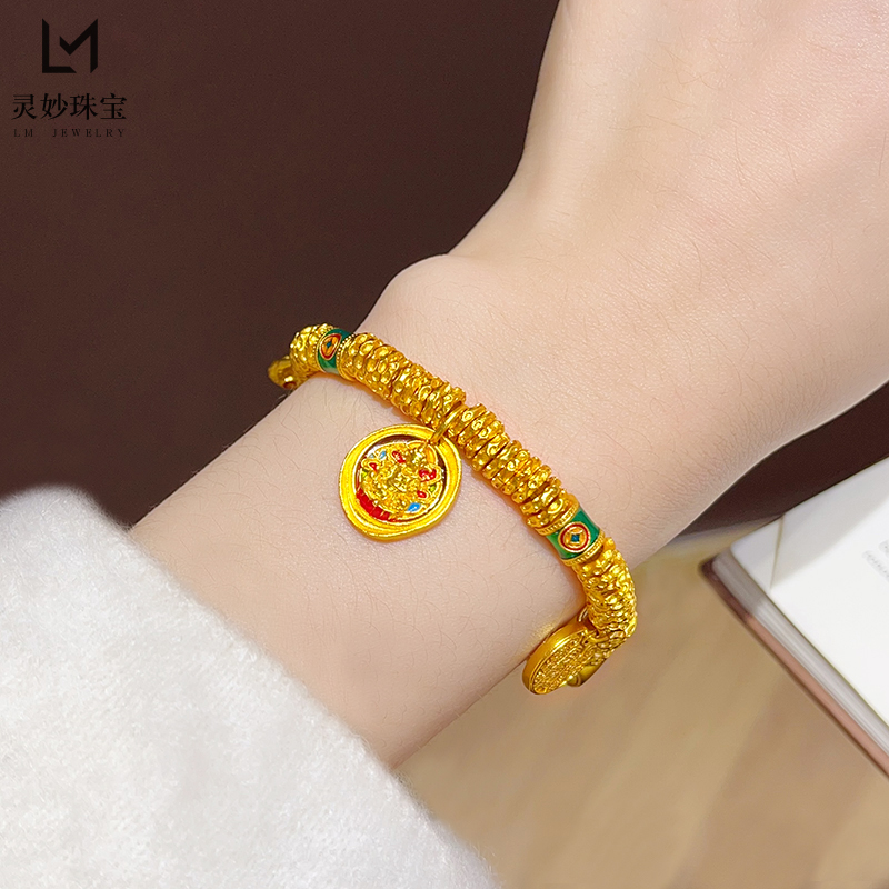 韦雪同款沙金珐琅彩黄财神小胖福盘缠手链国风五路财神手串送女友 - 灵妙水晶珠宝