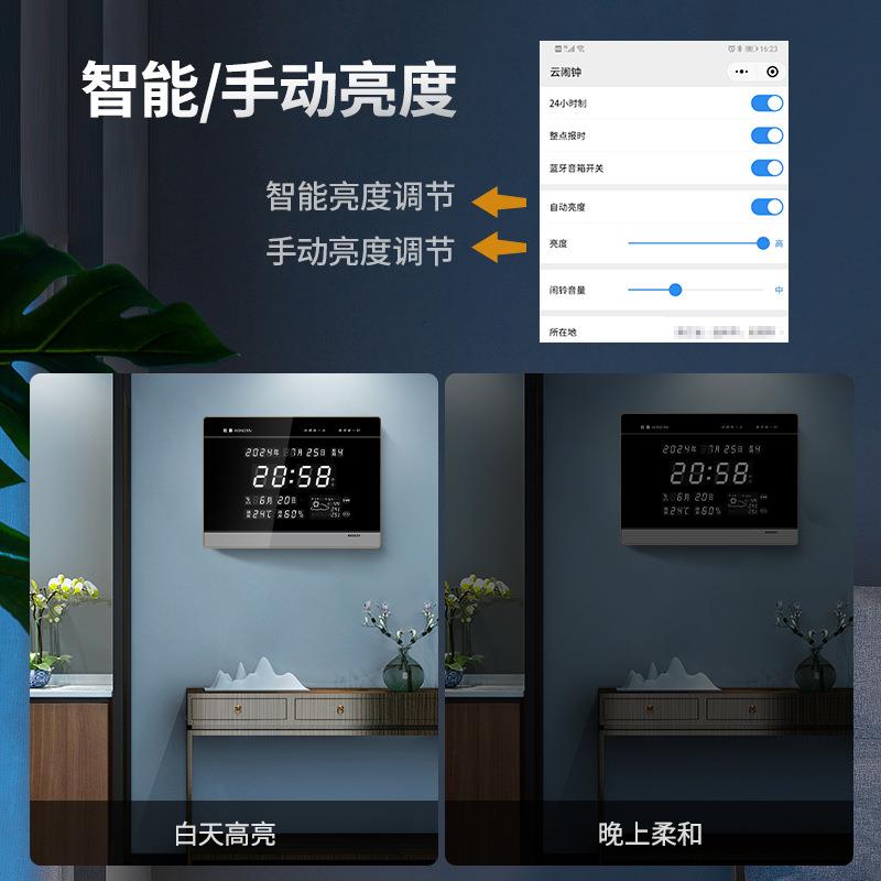 虹泰天气预报钟智能静音客厅数字电子万年历挂墙气象钟QS