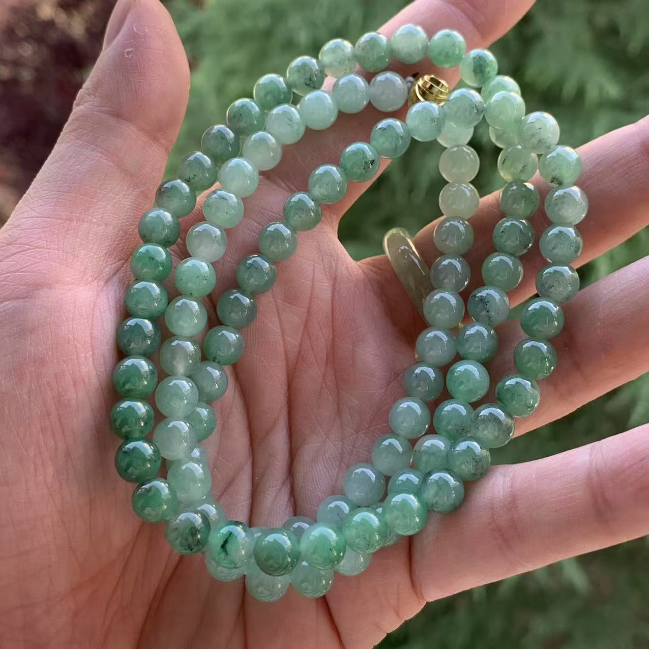 您的位置:他他商城  >   >  缅甸玉缅甸天然A货翡翠冰胶绿色黑色乌鸡圆珠项链6.7mm一物一证
