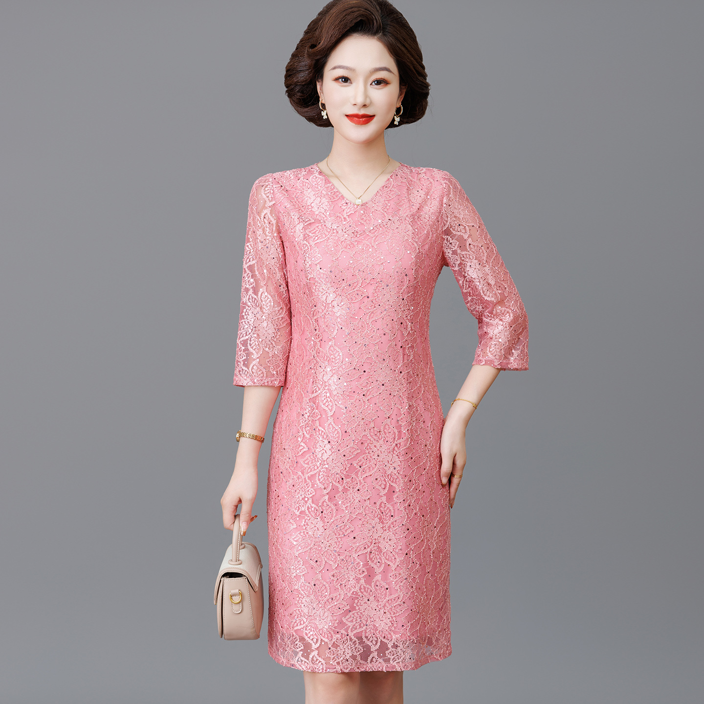 喜妈妈婚宴礼服遮肚中年高贵品牌平时可穿气质秋冬高档名牌连衣裙 - 永恒波波之恋