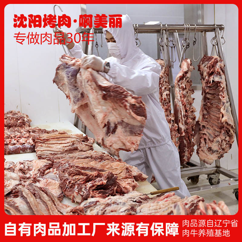 东北拌肉食材燕翅肉牛肋排瘦牛肉半成品家庭烤肉露营烧烤1000g - 啊美丽食品旗舰店