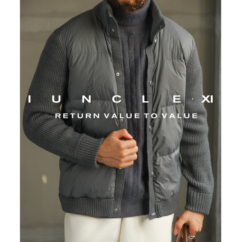 IUNCLEXI【城际暖域】休闲针织拼接立领轻薄羽绒服男士白鸭绒外套 - 逆行部落