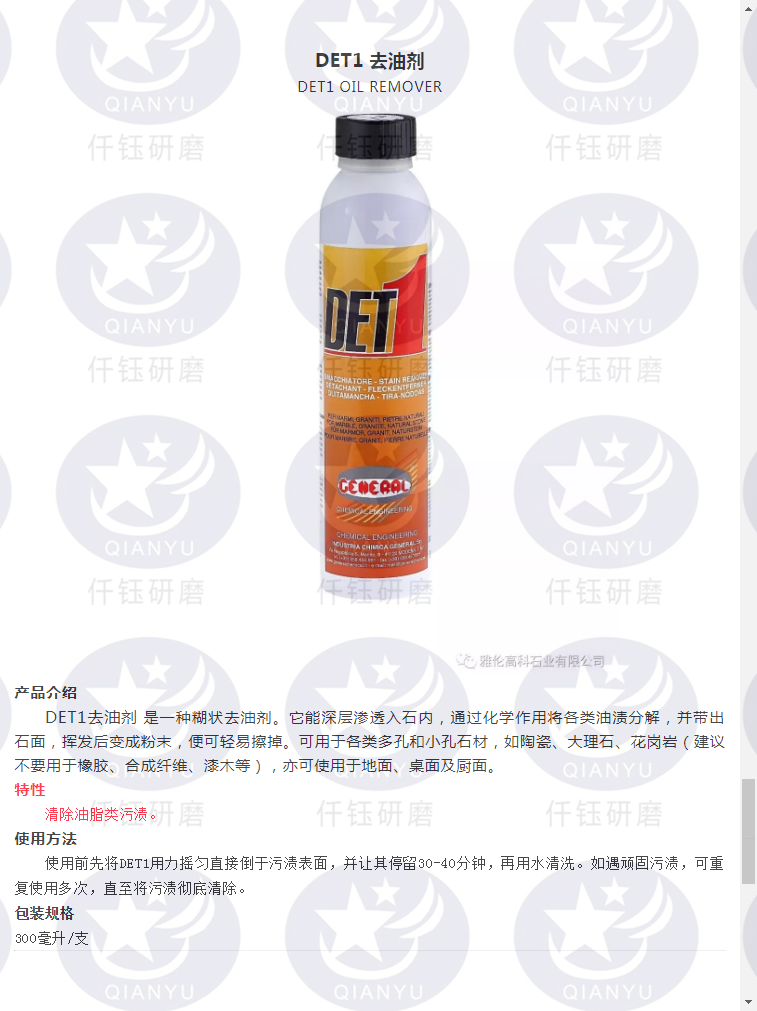 雅伦DET1石材除油剂大理石花岗石除油除污液除油除胶膏300ml - 广州焕然酒店清洁抛光用品