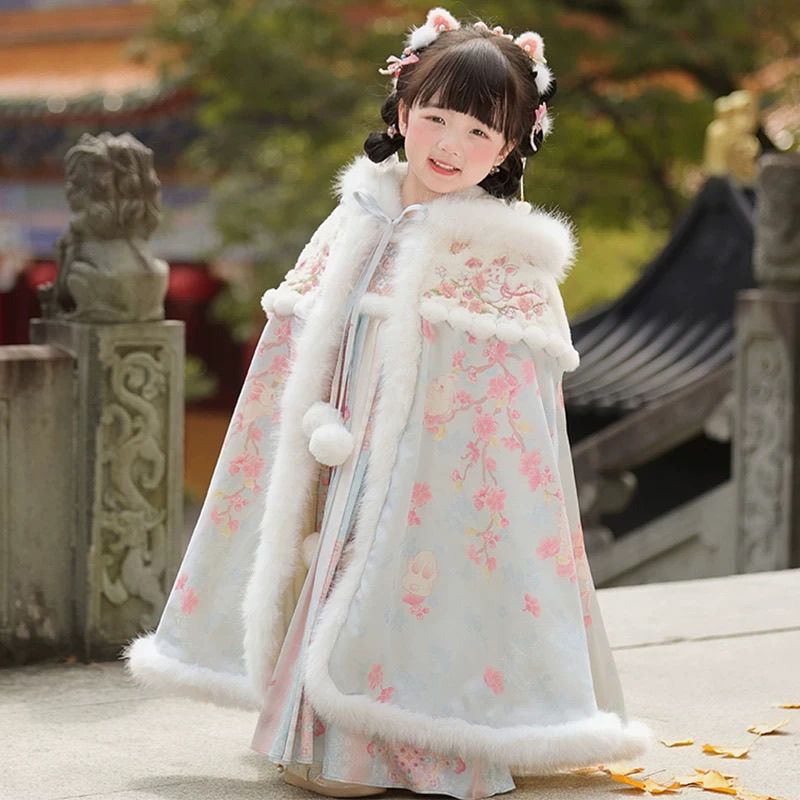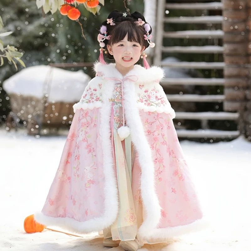 新款女童汉服斗篷冬季儿童披风拜年中国唐装古装保暖加绒 - 海棠花令