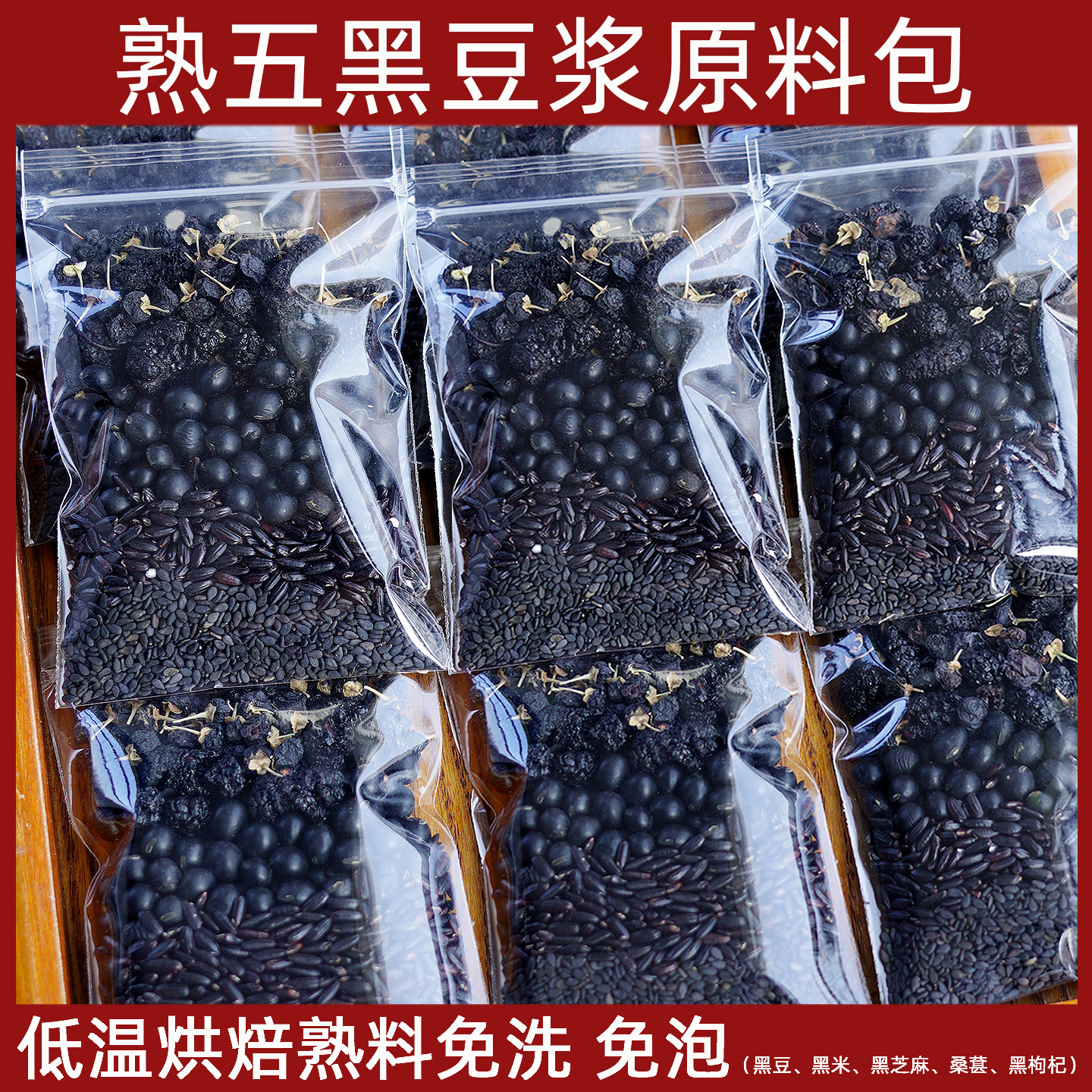 低温烘焙熟五黑豆浆原料包五谷杂粮黑豆黑芝麻糊免洗免泡现磨豆浆