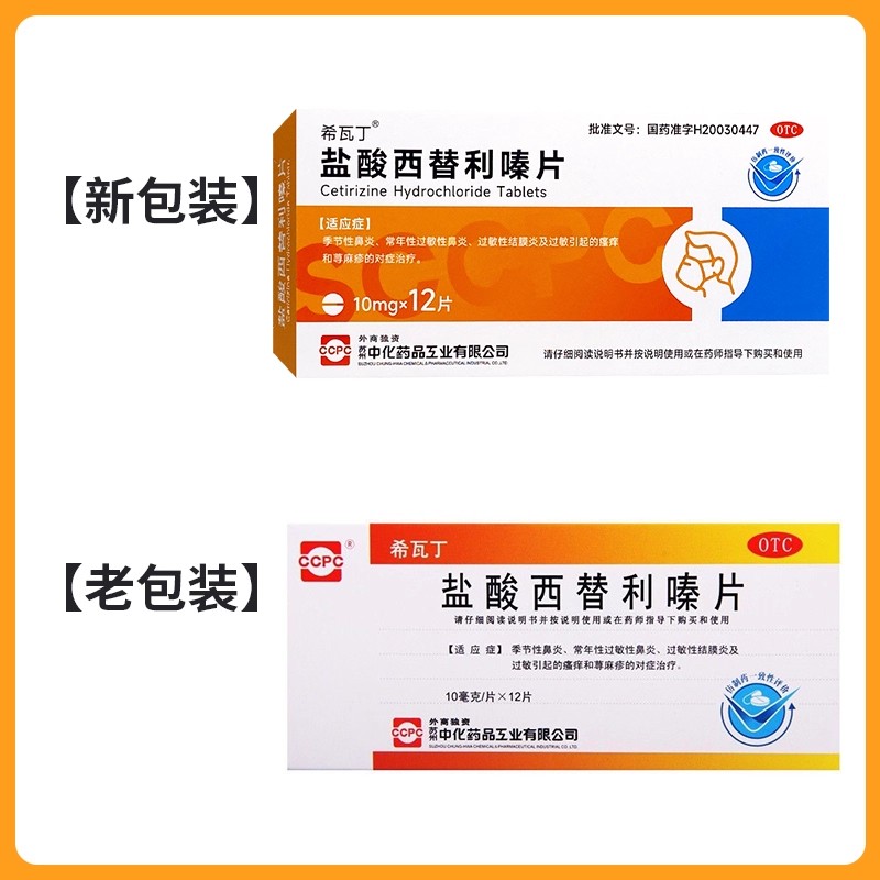 ccpc 希瓦丁 盐酸西替利嗪片 10mg*12片过敏性鼻炎荨麻疹结膜炎 - 蓉诚华夏大药房旗舰