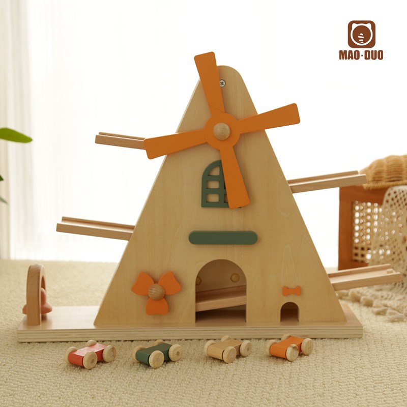 木制风车轨道惯性滑翔车小房子齿轮儿童小汽车轨道男女孩3456岁玩 - d[s406835233]