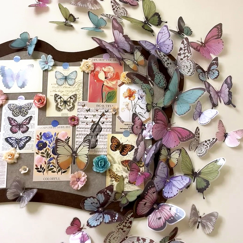 创意ins蝴蝶毛毡板照片墙卧室客厅玄关布置墙面装饰背景墙贴壁饰 - 墙饰生活研究所