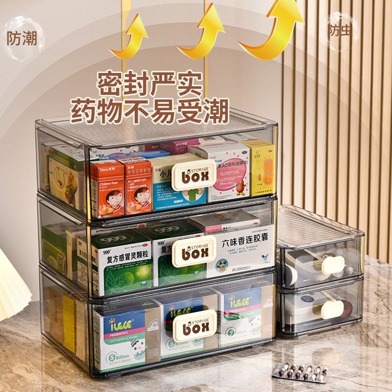 您的位置:他他商城  >   >  家庭装医药箱收纳盒大容量抽屉式透明H多层药品收纳柜家用药物药