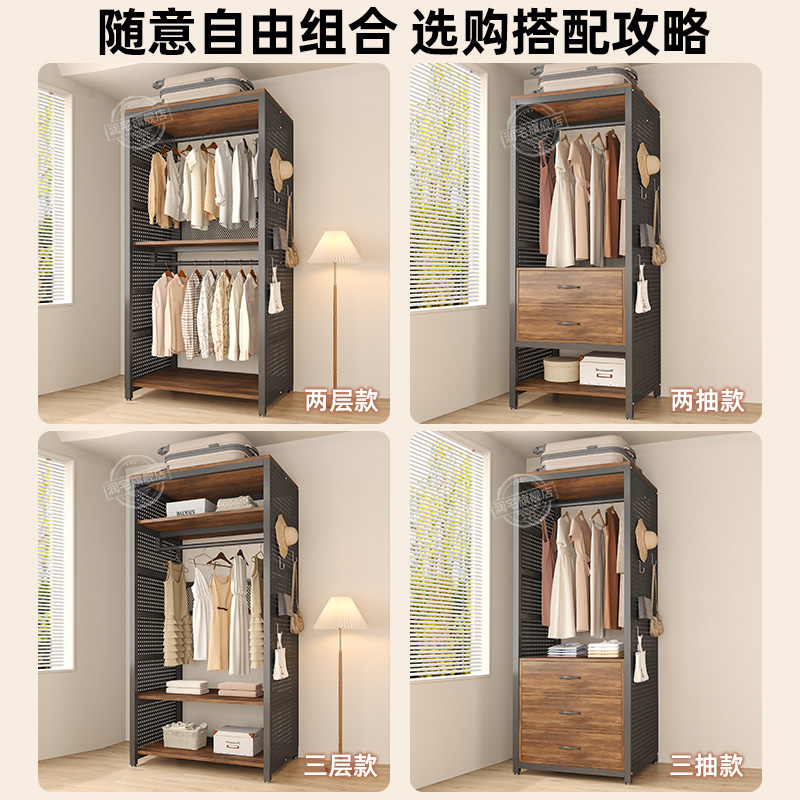 金属衣柜洞洞板简易钢架组合布衣柜开放式衣帽架防尘罩全封闭衣橱