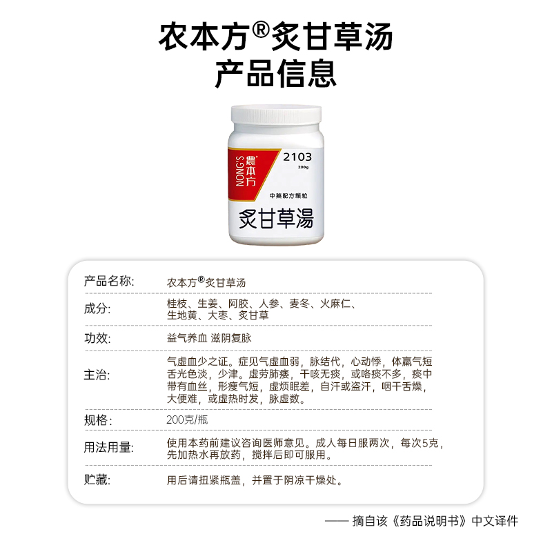 农本方炙甘草汤颗粒浓缩中药倪海厦汉方益气养血滋阴复脉气虚乏力 - 雄俊医药海外专营店