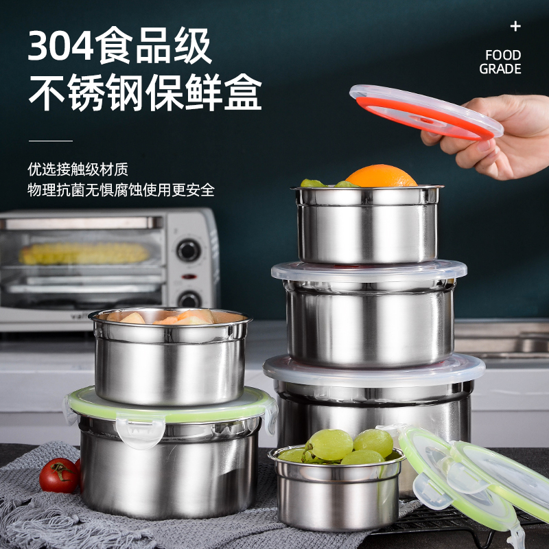 不锈钢保鲜盒密封碗304带盖圆形汤碗 便当碗泡面碗学生学校留样盒 - 艾菲诗不锈钢餐具厂