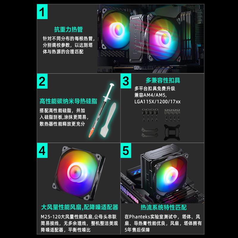 PHANTEKS追风者Polar伯乐S5-5覆合热管直触ARGB单塔CPU风冷散热器 - 安雪商贸城