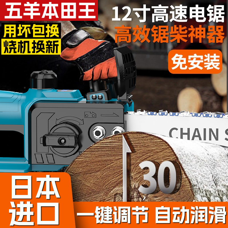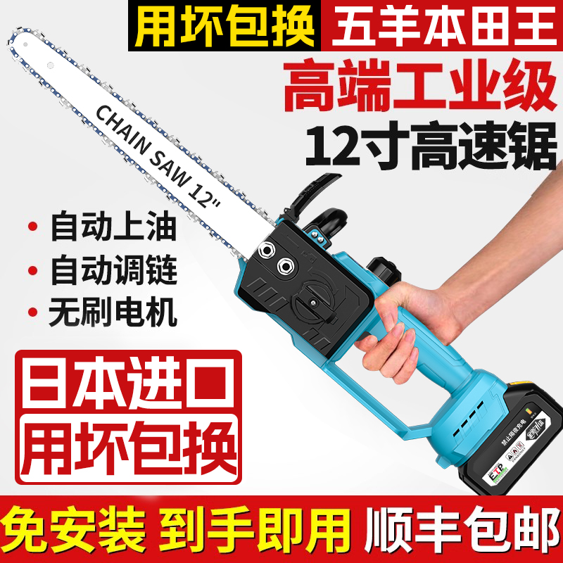 日本进口无刷高速锯大功率高转数电链锯手持12寸电链锯户外伐木王 - 五羊本田电动工具
