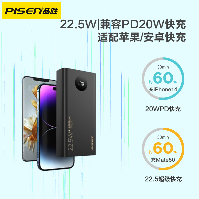 【新国标3C认证可登机】品胜充电宝20000毫安大容量小巧便携22.5W双向快充户外移动电源适用苹果17华为手机 - 品胜联沃专卖店