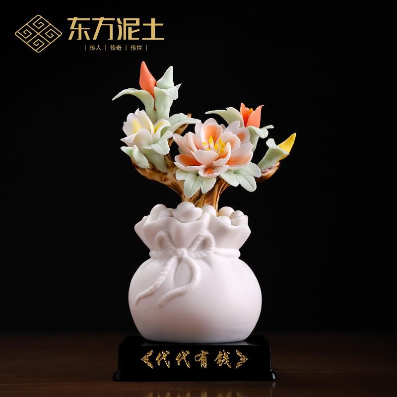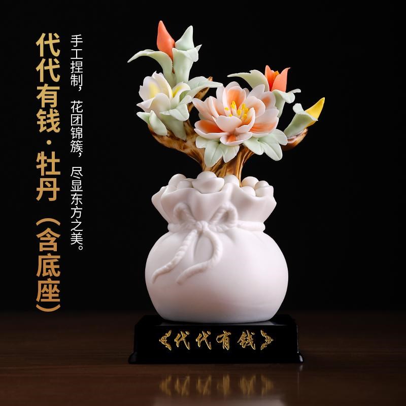 中式招财代代有钱陶瓷牡丹瓷花摆件办公室工位高端大气装饰艺术品 - 信义阁商城