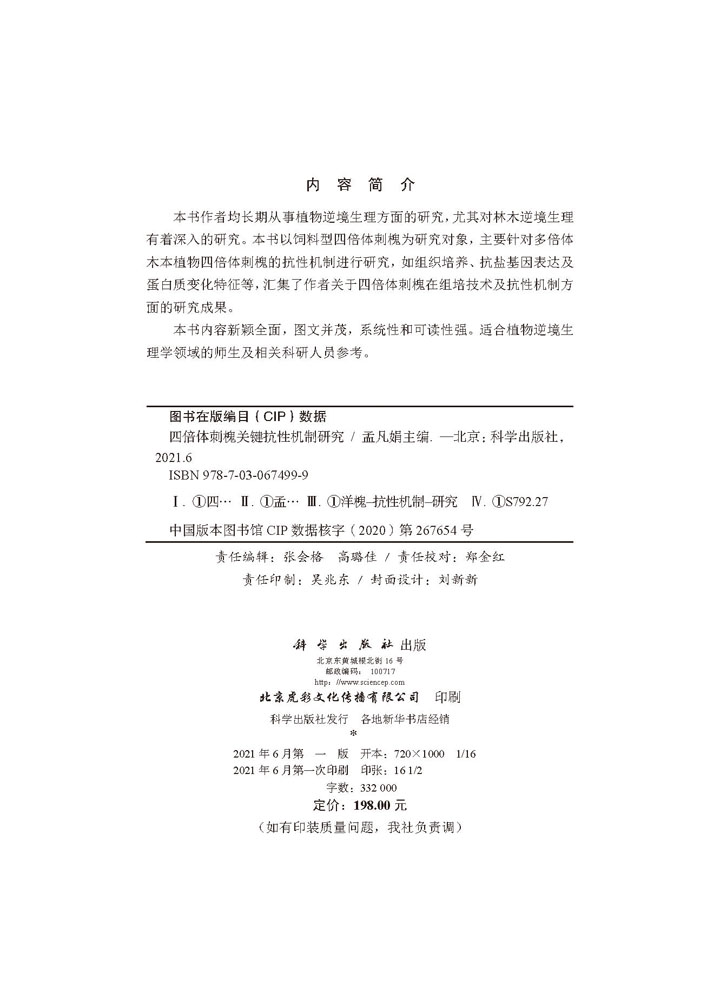 四倍体刺槐关键抗性机制研究/孟凡娟 - 盛世天佑图书专营店