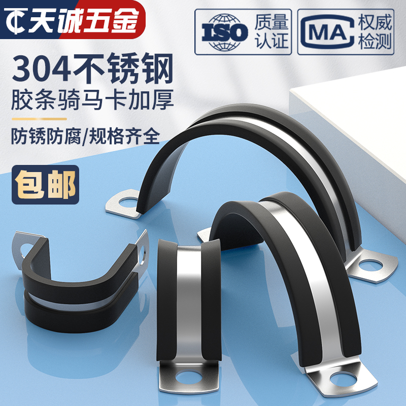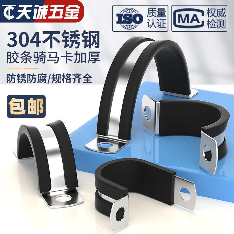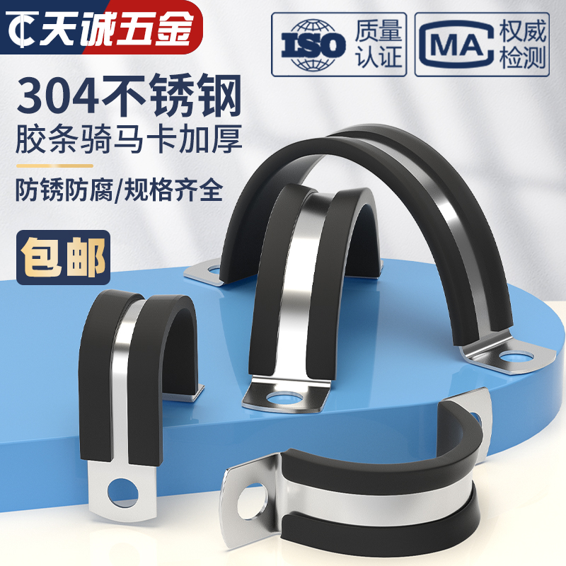 304不锈钢连胶条骑马卡管卡带胶条管支架管扣喉箍水管夹U/R型抱箍 - 天诚五金TC