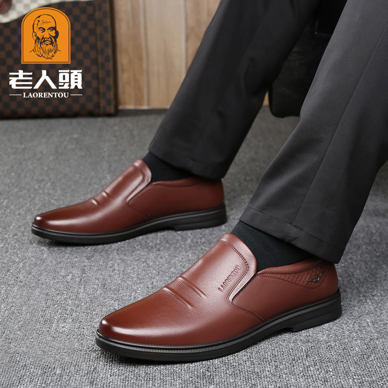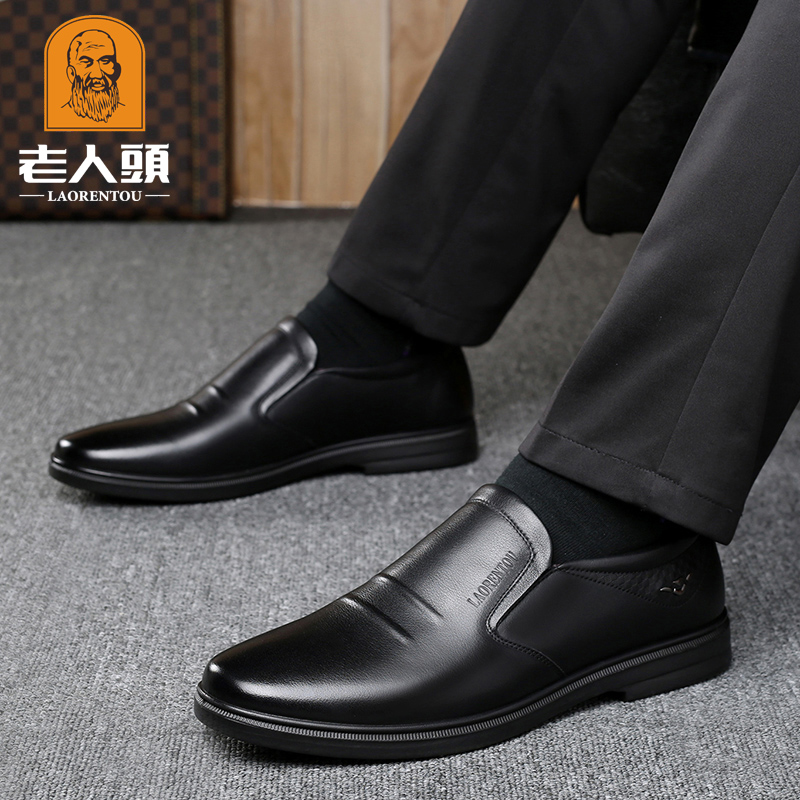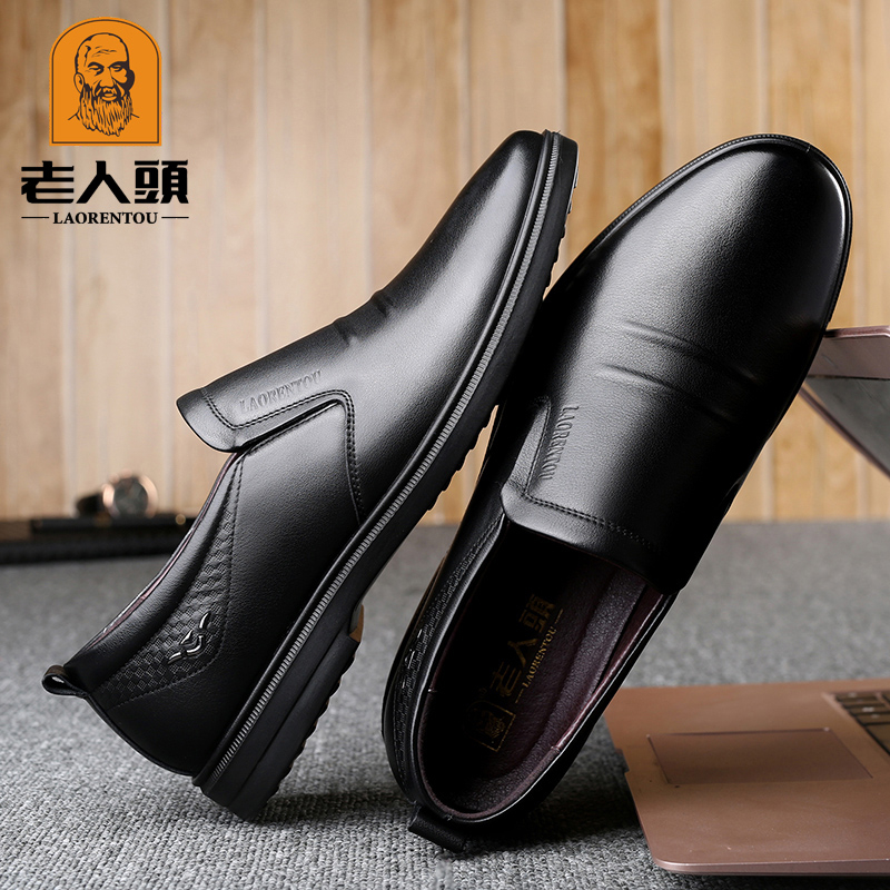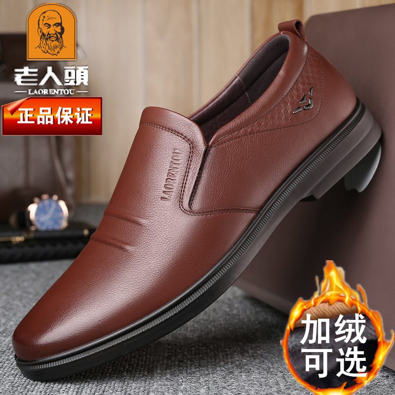 老人头商务休闲皮鞋男真皮冬季加绒保暖韩版男鞋透气中年软底软皮 - 老人头正品线上直销店