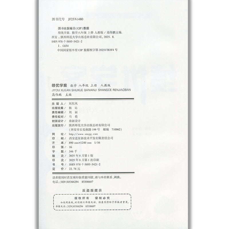 您的位置:他他商城  >  文体  >  2025绩优学案数学八年级上册配人教版RJ人民教育出版社 初二上册数学教辅导书 初中8/八年级上册数学同步练习册资料书
