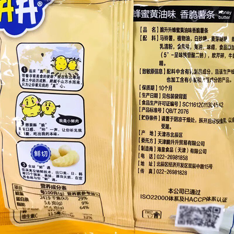 脆升升薯条20g香脆原味蜂蜜黄油薯片休闲解馋小零食大礼包孙颖莎